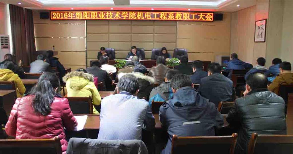 2016年12月21日下午,机电工程系在精业楼二楼会议室召开了2016年教职工大会。49名教职工参加会议,9名教职工因有教学任务或出差在外等情况请假,到会人数超过机电工程系教职工人数的2/3,符合法定人数,会议有效。会议由我系老师戴星主持。