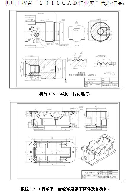 经过系领导、工程图学教研室教师认真评审,机制151班腾洪、数控151班王志远、数控152班秦鑫玉、汽车修理151班罗渊、机电152班昌昐望、模具151班蒋天洋、机械技能本科151班邹久铭获得最佳作业奖。另外还有几十名学生获得优秀作业奖。(付饶)