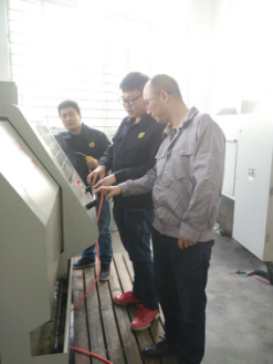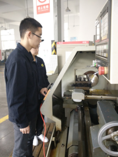 李平授课内容为“数控车削加工螺纹轴零件”,为理实一体化课程“数控车削加工零件”中的重要知识点之一。李平首先在多媒体机房详细分析了样例零件图的特点,然后指导学生进行数控编程,在正确模拟仿真演示后,到数控加工车间进行实际加工操作。在操作过程中,李平细心指导学生操作数控机床,实时找出操作中的不足之处,在零件加工完成后,对每个小组的实施过程进行了点评、总结。45分种的授课过程中,李平完整的展示了理实一体化课程实施全过程。他认真负责的工作态度、熟练的编程技巧、启发式的教学方法及学生规范的数控操作都给听课教师留下深刻印象。