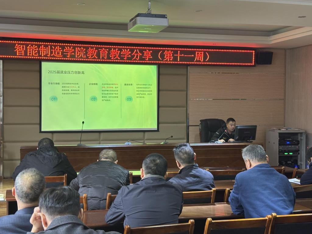 2025年11月12日下午,智能制造学院在机电大楼二楼会议室召开教育教学分享会。智能制造学院党总支书记、院长王建平,副院长谢晨以及学院全体教师参加了会议。