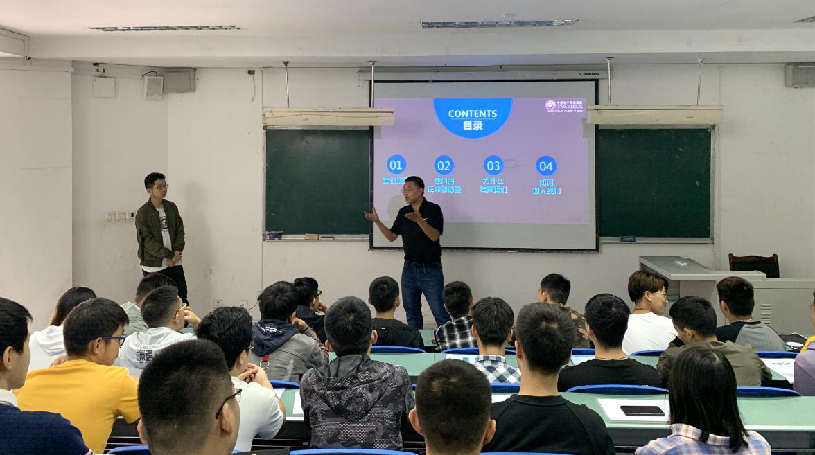 宣讲会上,陶沂尘用精美的PPT,为同学们介绍了成都中电熊猫显示科技有限公司的发展历程、企业文化和发展前景。随后描述了此次招聘的岗位、人数、要求、薪资待遇、工作时间和工作地址等问题。最后陶沂尘对每一个岗位的职责和发展方向做了详细的解说。