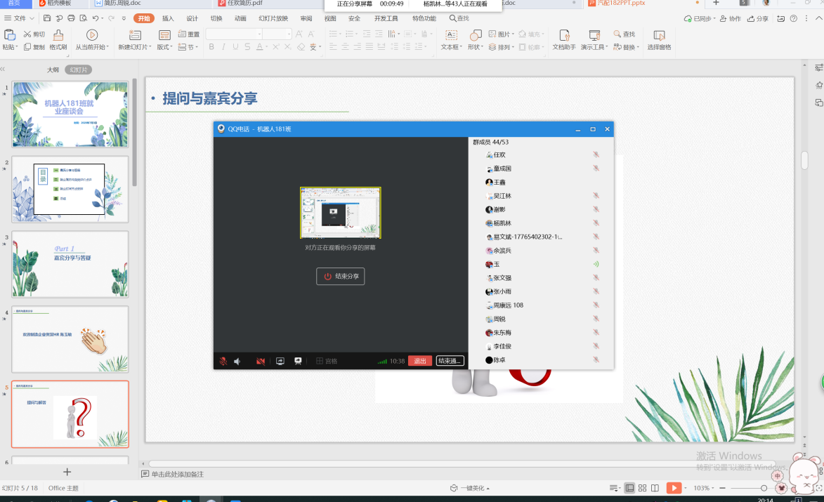 7月3日晚上8点,工业机器人技术181班在线上召开就业座谈会。会议由辅导员刘英蝶老师主持,成都居里亚家居有限公司HR负责人陈玉敏及工业机器人技术181班45名学生参加会议。