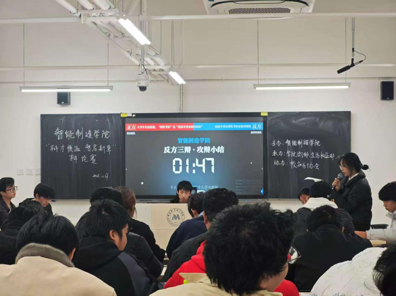 11月26日至27日,智能制造学院“辩才横溢,智启新章”辩论赛初赛在二教305教室落幕。赛事由学院学习部、心理部、知言社协会及光魅协会联合承办,旨在锻炼学生思辨与协作能力,吸引2024级、2025级多支队伍参与,现场氛围热烈。