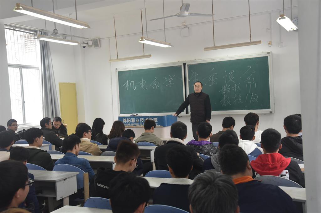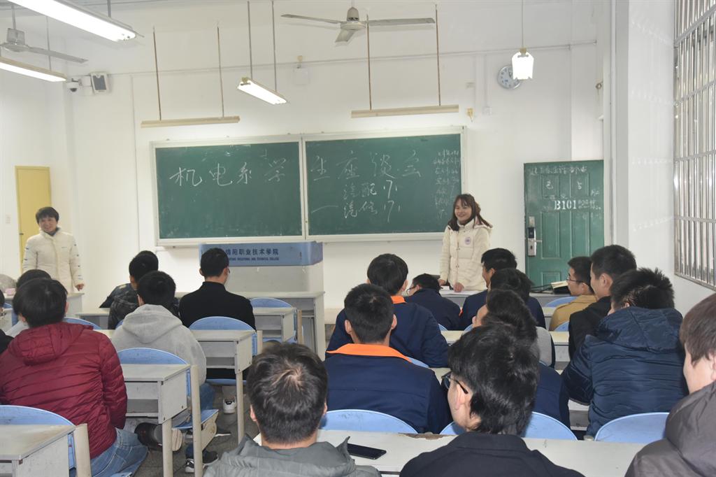 2018年11月21日中午,机电工程系在综合楼一楼各教室开展学生座谈会,各教研室老师及辅导员参会。