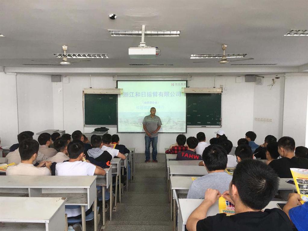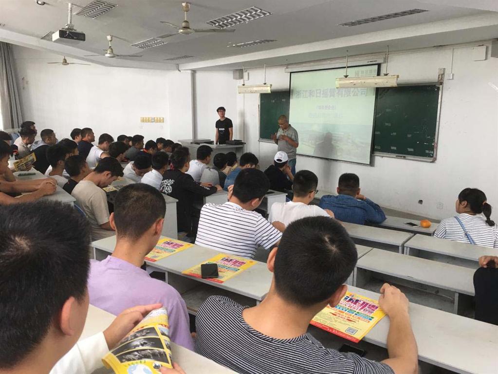2018年9月25日中午13:30在我校ZB117教室召开浙江和日摇臂有限公司的专场宣讲暨招聘会,机制、数控、模具、汽配等专业的同学都到会参加宣讲。