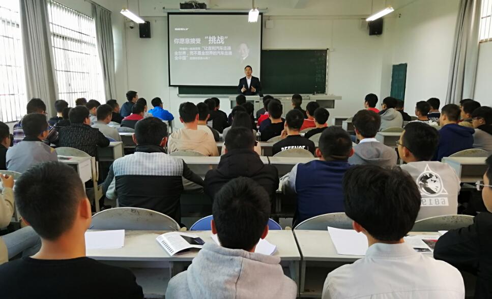 据悉,为了此次宣讲暨招聘会,机电工程系党总支书记王建平一行四人于3月9日赴四川吉利汽车部件有限公司考察,并于3月21日在ZF311教室面向2019届毕业班报名吉利领克订单培养班的学生开展宣传动员大会。(李富)