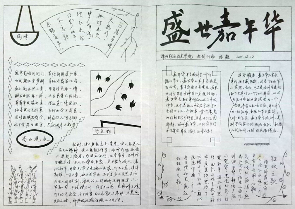 本次手抄报比赛为学生们搭建了展示才能的平台,同学们纷纷用色彩描绘祥和的节日气氛,用文字书写对未来的憧憬。活动不仅丰富了同学们的校园文化生活,同时也意在锻炼大家的动手动脑能力。(万天洪)