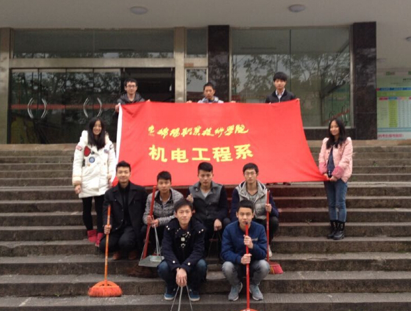 为响应院团委“学雷锋,我兴奋!学雷锋,我骄傲!”主题活动的号召,2014年3月5日下午,机电工程系的20余名学生志愿者在团学干部的带领下开展了“学雷锋”校园卫生清扫活动。
