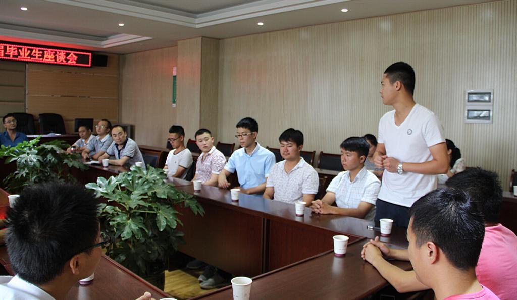 会议中,毕业学生代表畅所欲言,并结合自己的切身体会,分享了自己在学习、工作、生活中的诸多感受,大家言辞间无不洋溢着对母校深深的眷恋与热爱之情。此外,在专业课设置、教学环节、师生交流、离校手续、就业引导等方面毕业生们也真诚地提出了自己的建议。在场老师们在认真听取同学们意见的同时,也表示在以后的工作中将不断改进,加强与同学们之间的信息交流。