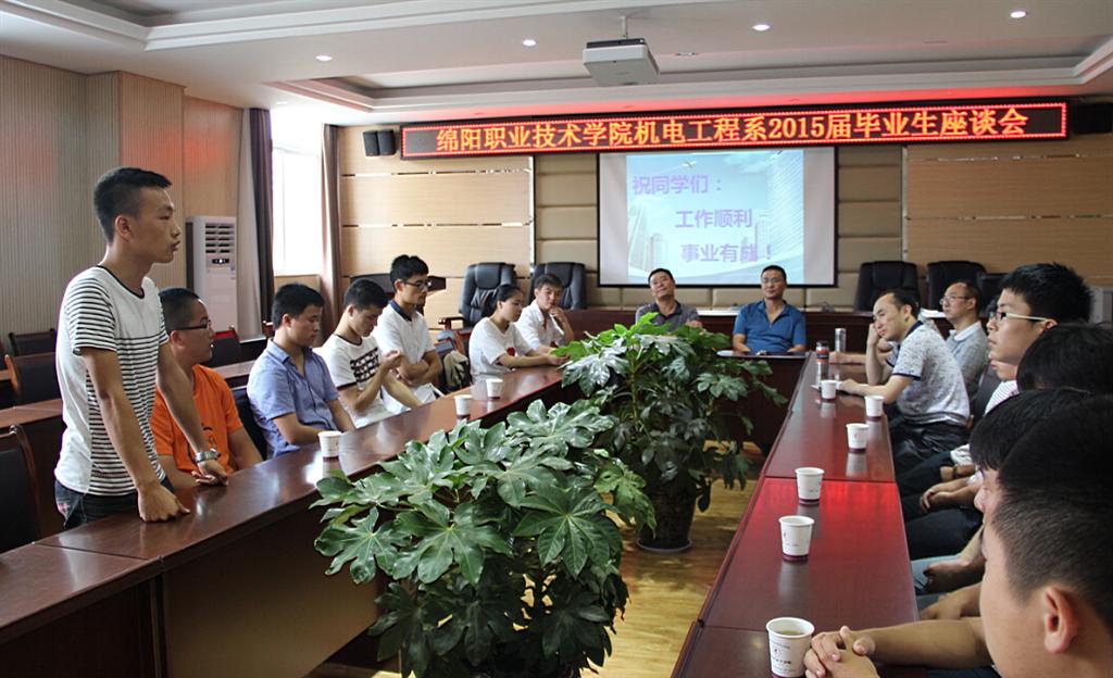 6月18日下午,机电工程系在精业楼二楼会议室召开了2015届毕业生座谈会。机电工程系副主任邓先智教授,教研室主任梁春光、付饶、蒲定坤、李平,毕业班辅导员老师及毕业班40余名学生代表参加会议。会议由机电工程系党总支副书记王建平主持。