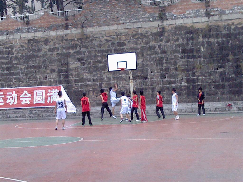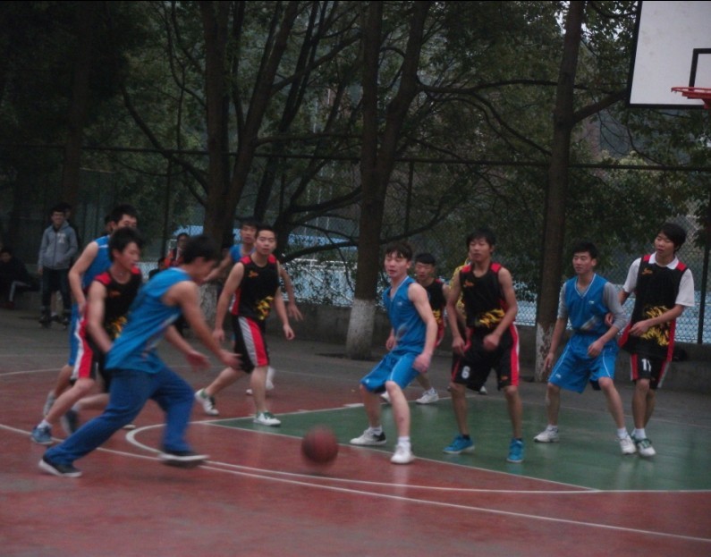 我们把目光转向机制121与机电122的比赛场地上。随着裁判的一声哨响拉开了比赛的序幕。争球,机制121班中锋将球抢到,传球,前锋一个三步上篮,球进了!双方场上篮球健儿们气势如虹,场下的啦啦队队员们也不甘落后,只听呐喊声、加油声阵阵,这些加油呐喊是运动员们的强心剂,在啦啦队的呐喊声中,上半场机制121班以15:11领先。扣球,盖帽,三分,队员们飞一般的速度火一般的热情将赛场的气氛燃烧起一个个高潮,双方的比分交替上升着。