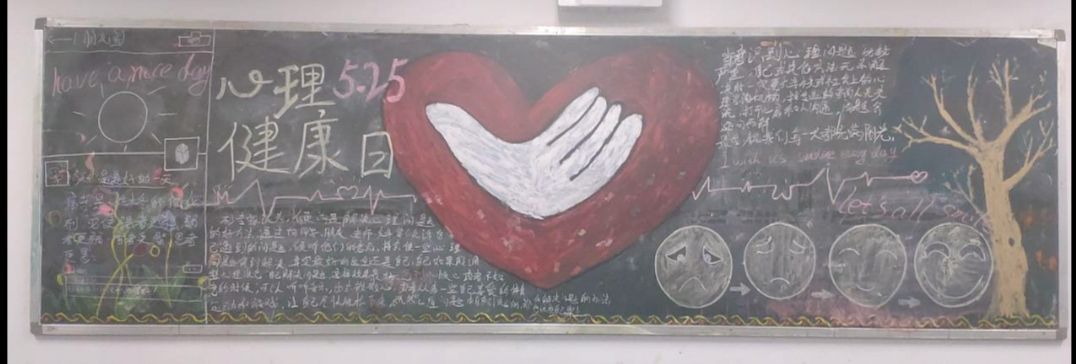 为了让大家更加了解心理健康知识、增强心理健康意识、提高所有学生对心理健康教育的关注和参与度,在5.25心理健康节来临之际,机电工程系心理部组织各班绘制了5.25心理健康主题黑板报,让大家更好的了解并且宣传了心理健康知识。此次心理健康月黑板报的宣传,在系内营造良了好的心理健康氛围,同时也让大家更加重视心理健康教育,引导学生树立起积极乐观的生活态度。