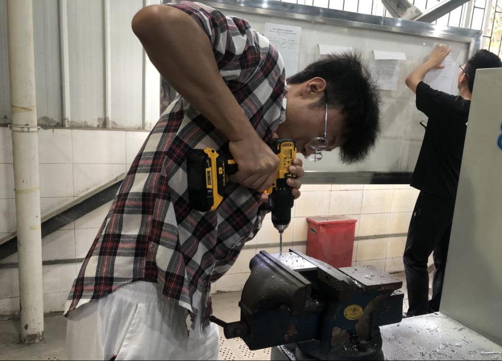 本次举行的电动工具类趣味比赛,包括“趣味吹球”、“限时钻孔”、“限时加工螺纹孔”等3个赛项。比赛中,参赛同学使用由史丹利百得(苏州)科技有限公司提供的吹风机、充电手枪钻等电动工具,根据比赛规则完成比赛。在比赛规则制定上,兼顾了趣味性与专业性,并在赛前组织参赛同学进行了专门练习,既锻炼同学们的动手能力,也考察了钳工等专业技能。