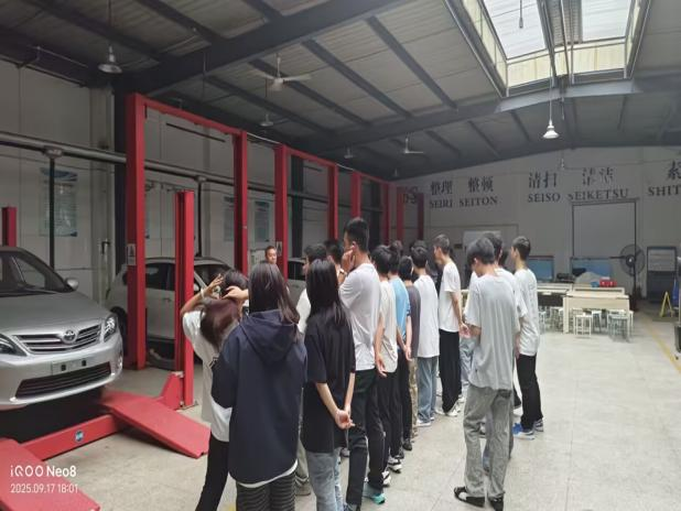 汽车实训室内陈列有多辆教学用车及发动机、变速箱等核心零部件。实训室负责人系统讲解了汽车结构与工作原理,将抽象的理论知识转化为具体认知。从基础维护到故障排查,老师耐心解答同学们的疑问,帮助大家在实践中巩固专业基础。
