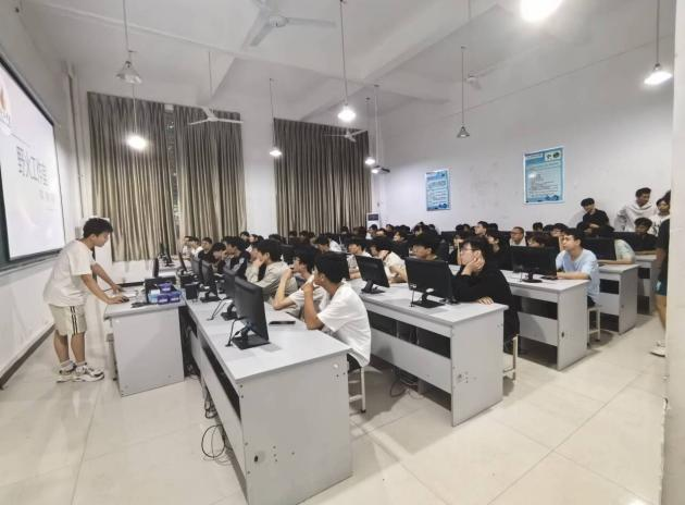 机电大楼机房内,野火协会、四维空间协会及鲲鹏协会进行了精彩的社团展示,吸引了众多新生驻足交流。学长学姐热情介绍各协会的特色活动,鼓励新生加入技术社团,拓展专业兴趣,提升综合能力。