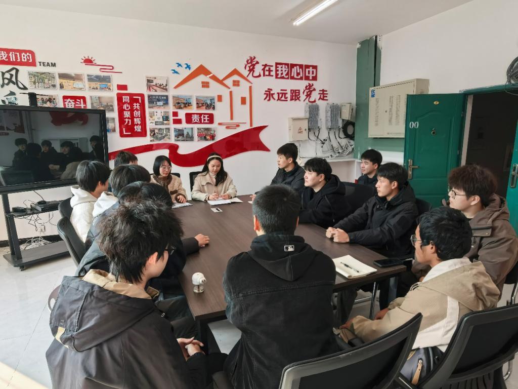 12月10日下午2:00,马克思主义学院思政教师景石红、谢曾由嘉深入智能制造学院一站式服务社区,智能制造学院辅导员毛鹏枭主持会议,与16名学生代表(含入党积极分子、预备党员及民族学生)开展面对面座谈,精准对接需求、搭建沟通桥梁。