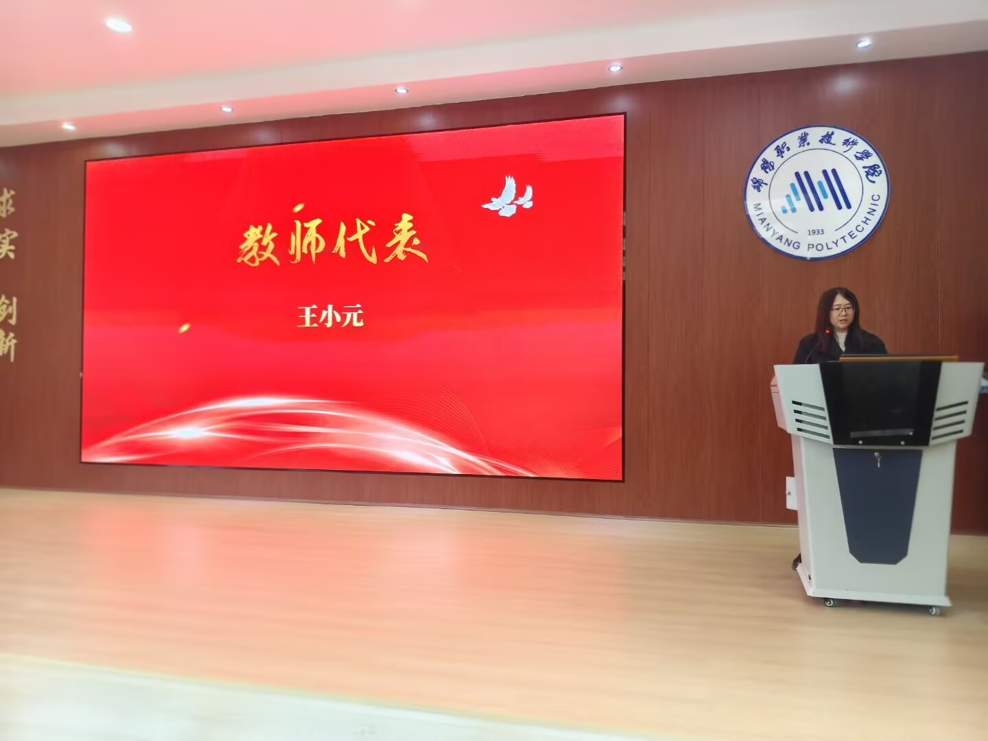 随后,师生代表先后登台分享心声。学生代表王增玉深情回顾了备赛历程,他表示,成绩的取得离不开学院党支部的关怀、育人工作室的培养以及老师们的悉心指导。在工作室的集训中,不仅练就了过硬的专业技能,更树立了“技能报国、服务人民”的坚定信念。教师代表王小元分享了育人心得,她表示,作为教育工作者,始终牢记为党育人、为国育才的使命,将党建引领与技能培养深度融合,在备赛过程中与学子们并肩作战,既打磨专业本领,更厚植家国情怀。看到学子们在赛场为校争光、为技能事业添彩,是身为师者最大的欣慰,未来将继续依托工作室平台,匠心育才、薪火相传。