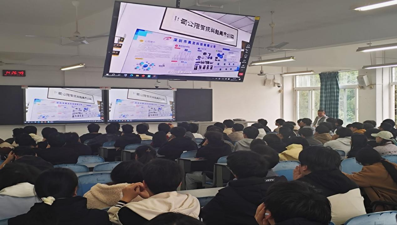 活动开始,深圳市昊龙科技有限公司董事长吴龙先生致辞并对公司相关情况进行了介绍,让师生们初步了解了该公司。随后,通过视频中详实的内容,感受企业的发展历程、核心技术与文化理念。紧接着的PPT展示环节,企业代表从公司概况、业务板块、发展愿景等方面进行了深入分享,让师生们对企业有了更全面的认知。