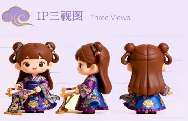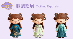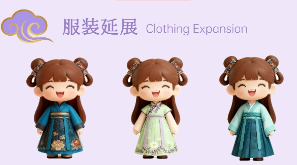 “云梭织梦” 作品以中国非物质文化遗产蜀锦为核心创意载体,打造了兼具文化传播与农业创意属性并将蜀锦织造工艺、龙纹、牡丹纹等经典纹样提炼为Q版视觉符号,既还原蜀锦工具、服饰形制等工艺细节,又融入二次元萌系风格,实现“传统技艺+现代审美”的跨界融合。