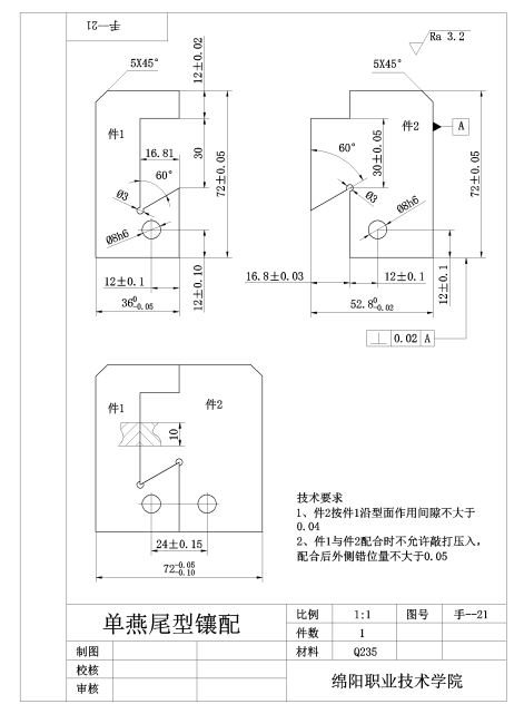 附件一: 钳工技能大赛竞赛实操样题