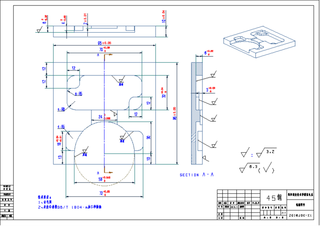 4.在竞赛开始的同时,由竞赛裁判组分发图纸,同时开始比赛计时。竞赛时间为240分钟(包括编程时间和加工时间)。