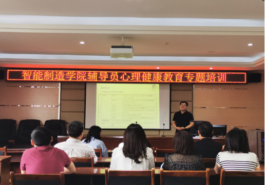 为加强疫情防控常态化大学生心理健康教育,进一步提高辅导员心理危机干预水平和能力、提高学生心理健康教育工作的针对性和实效性,智能制造学院于2022年5月11日组织全体辅导员参加了“辅导员心理健康教育”专题培训。
