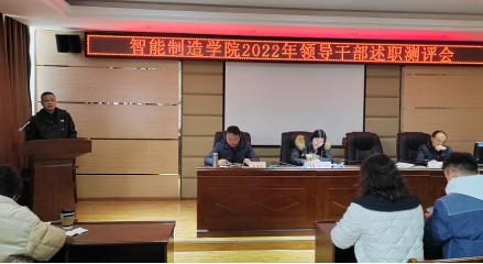 为深入贯彻落实习近平新时代中国特色社会主义思想和党的二十大精神,落实全面从严治党要求,进一步提升干部的执行力,促进学校内涵发展,1月6日下午,智能制造学院在机电大楼会议室召开2022年度领导干部述职测评会,学院领导班子及全体教职工参会。