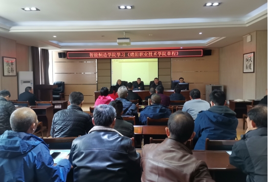 3月1日,智能制造学院积极响应学校学习宣传贯彻《绵阳职业技术学院章程》(以下简称《章程》)的通知,组织全体教职工集中学习《章程》,院长王建平主持会议,办公室主任左培良领学。