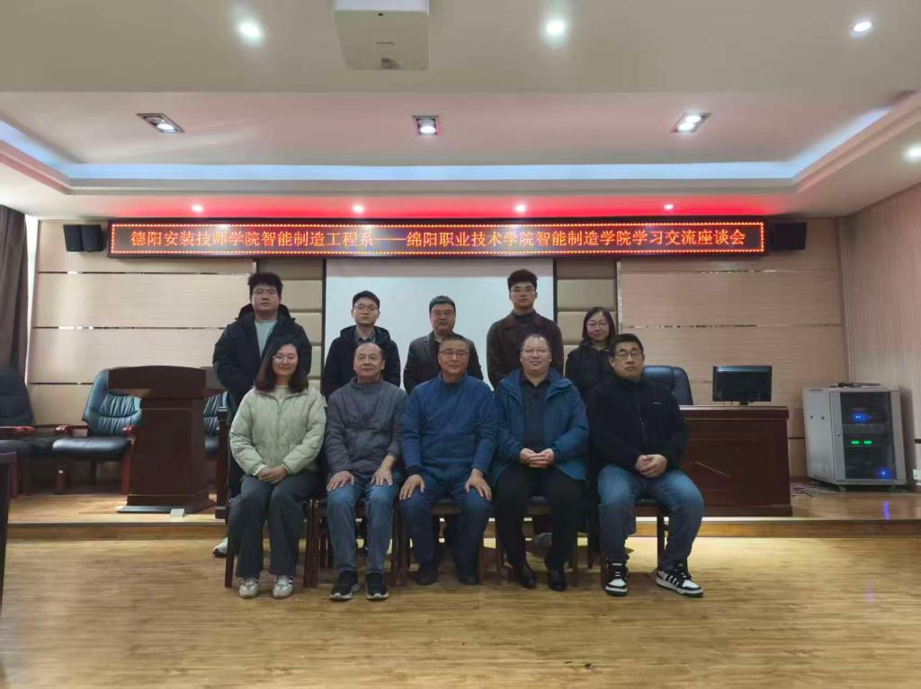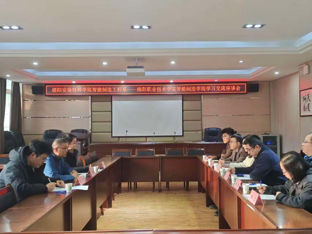 为深化校际合作交流,共促智能制造领域教育教学高质量发展,11月23日上午9时,德阳安装技师学院智能制造工程系与智能制造学院学习交流会议在机电大楼210会议室顺利召开。智能制造学院党总支书记、院长王建平,专任教师赵帅,团总支书记邓靖川;德阳安装技师学院智能制造工程系科长高建,专业带头人吕海、陈治伟及骨干教师龙勇、罗清泉、刘卫等双方教师代表参会,会议由邓靖川主持。