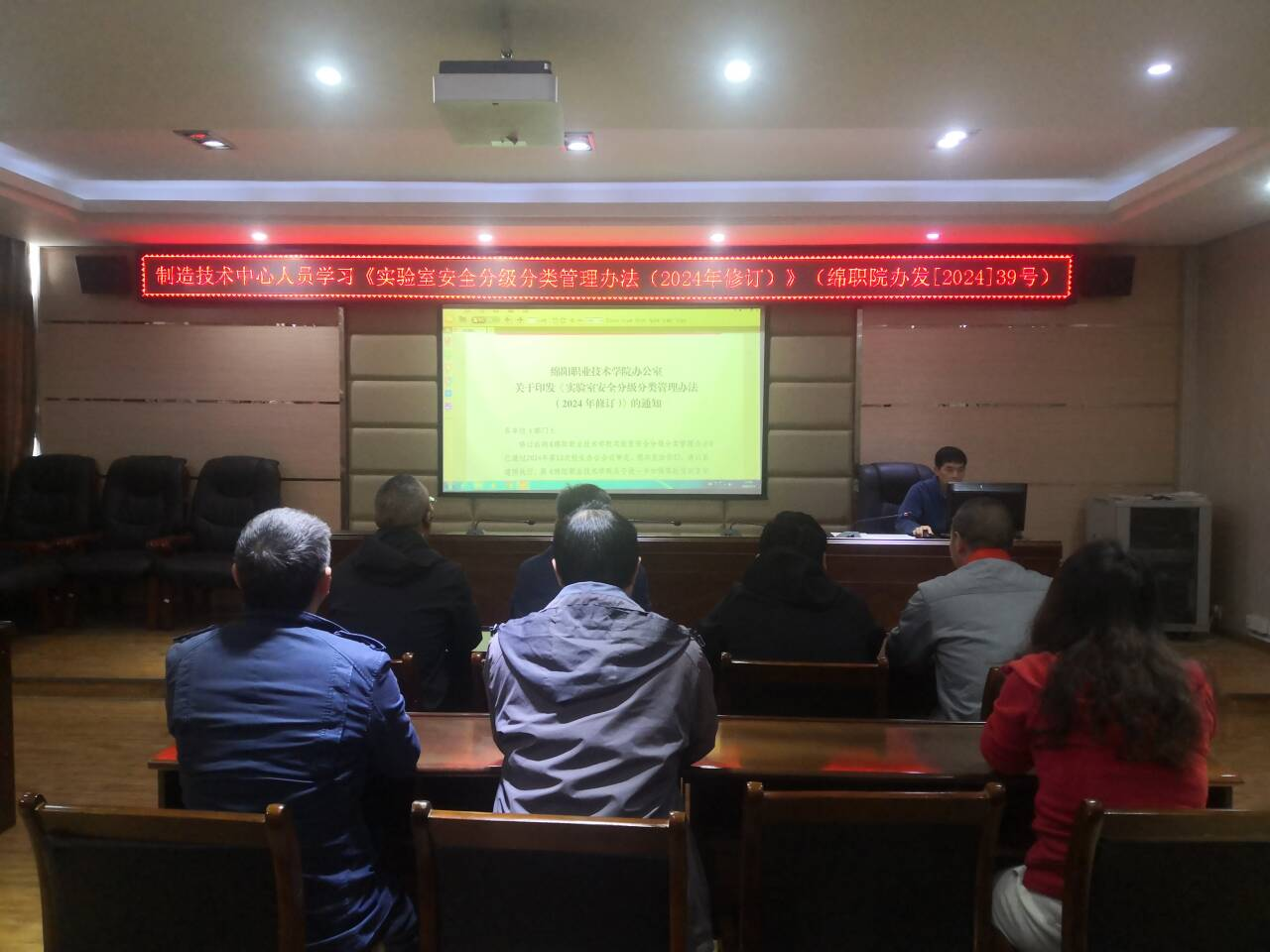 制造中心组织全体人员集中学习了《实验室安全分级分类管理办法(2024年修订)》《绵阳职业技术学院安全责任清单(试行)》《智能制造学院实验室安全责任体系》等文件。通过学习,全体人员进一步强化了安全责任意识,明确了各自岗位的安全职责。