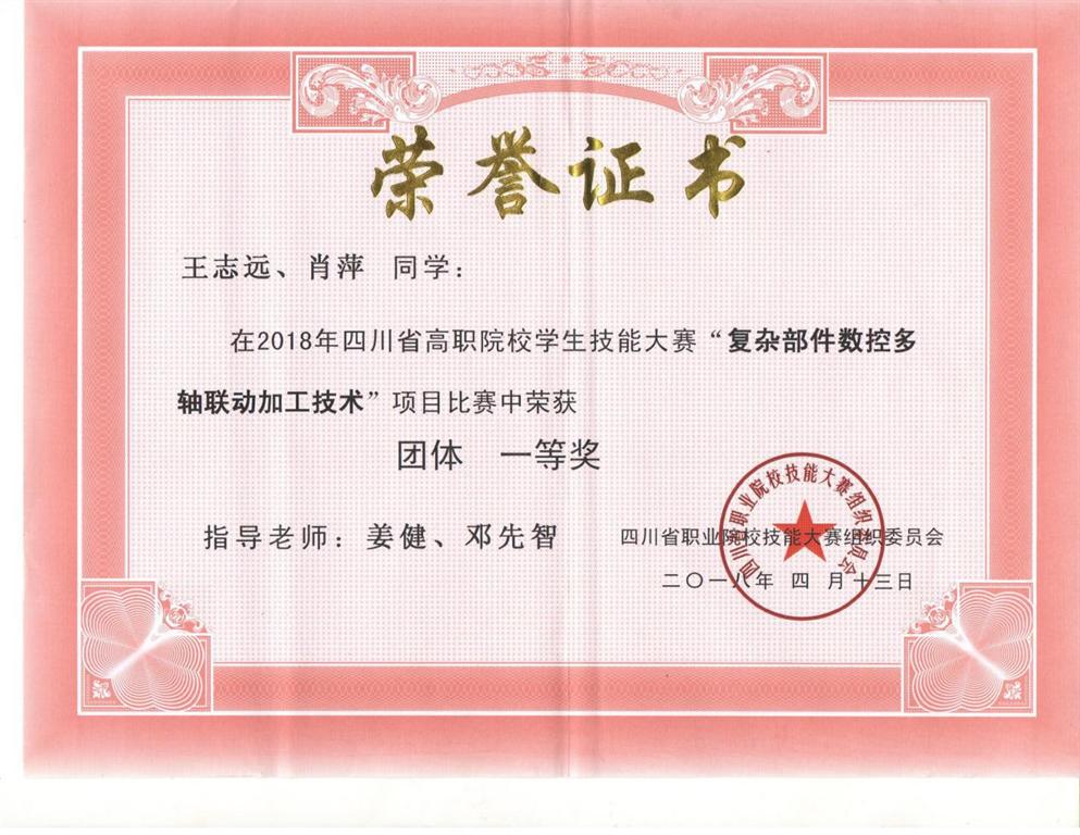 2018年4月11日—4月13日,2018年四川省高职院校学生技能大赛“复杂部件数控多轴联动加工技术”项目比赛在四川航天职业技术学院举行。我系其中一支参赛队伍勇夺项目比赛团体一等奖,将代表四川省参加全国总决赛。