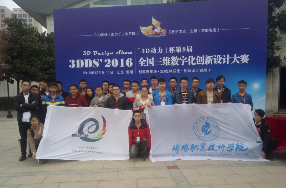 2016年12月12日,2016年全国3D大赛总决赛在江苏常州举行,我系学生组成的10支队伍与全国800余所高校3000多名选手同台竞技,荣获2个一等奖、3个二等奖、5个三等奖、1个VR创作之星,学院获得优秀组织奖。