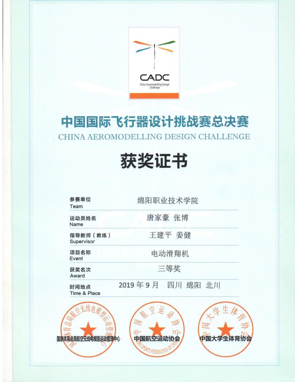 2019年9月8日中国国际飞行器设计挑战赛(北川站)在大禹故乡北川国家级(北川)航空飞行营地正式拉开序幕。我校由机电工程系“鲲鹏协会”学生组队参加比赛,参赛学生为本次比赛进行了长期的准备,充分利用课余时间以及暑假时间,克服重重困难,最终荣获大赛三等奖一项。