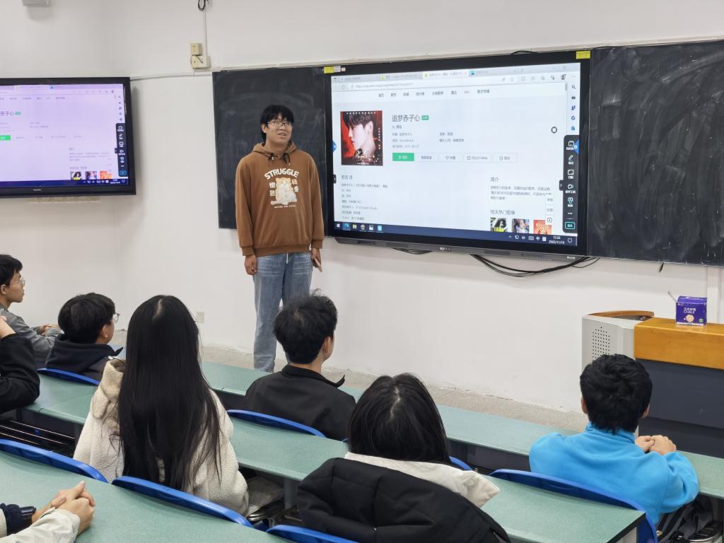 机制242班的冉宏粒同学率先分享歌曲《追梦赤子心》,结合自身专业学习中攻克难题的经历谈追梦感悟,真挚地表达引发在场学子强烈共鸣;机制252班的熊芳同学演唱《才二十三》,轻快旋律与活力唱腔生动诠释了青年学子的朝气与热忱;心理干事毛鹏枭老师则带来周杰伦的《青花瓷》,在悠扬旋律中结合自身成长经历解读歌曲的文化内涵,独特的分享视角拉近了师生距离,现场互动热烈。