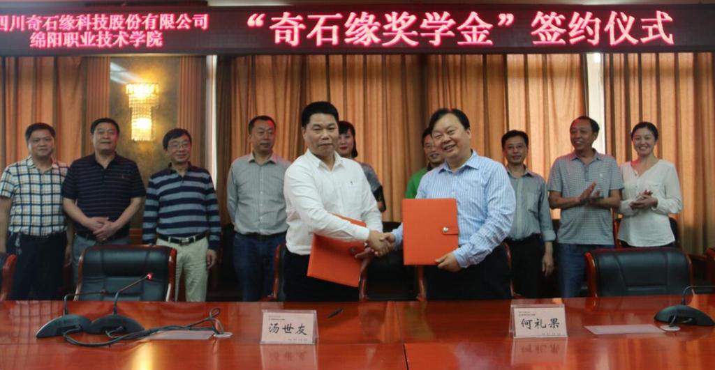 四川奇石缘科技股份有限公司成立于2003年,通过十余年的创新研发,在智能交通、智能环保、智能制造等行业领域建设实施了多项物联网典型示范工程,奠定了行业领先地位,现已成为四川知名高新技术企业。本次设立的“奇石缘奖学金”分为“励志奖学金”和“创新奖学金”,主要面向我院机电工程系学生,旨在培养知识、技能、素养三位一体的高技能创新型人才,其评选和发放由校企双方共同组织实施。(文/图: 李富 景石红)