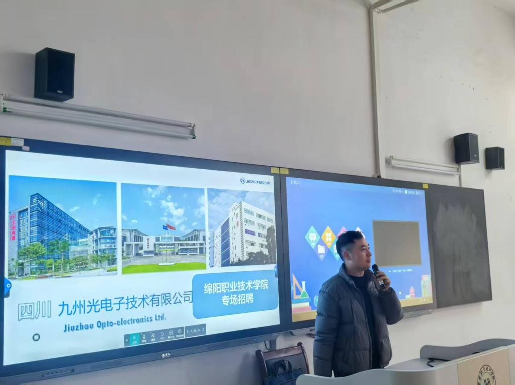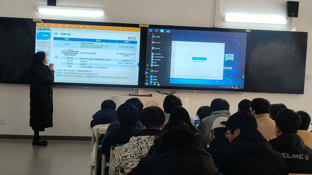 本次宣讲会时间安排紧凑有序,企业宣讲分时段、分场次同步开展,以满足学生的多元咨询需求。中午13:00,富临精工、九州两家企业率先开讲;14:00,惠科、京东方接续带来精彩分享;15:00,威斯卡特、华丰的企业代表依次登场。考虑到参会学生人数较多,每家企业均安排两场宣讲,每场时长约30分钟,确保同学们能充分了解企业信息。未到场的其余合作企业宣讲活动,将于下周三有序推进。