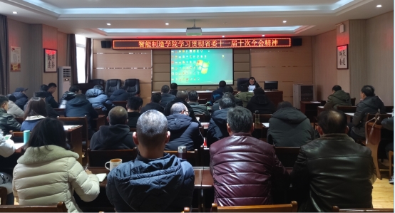 1月5日,智能制造学院全体教职工召开会议集中学习贯彻省委十一届十次全会精神。会议由智能制造学院党总支书记易永红主持。