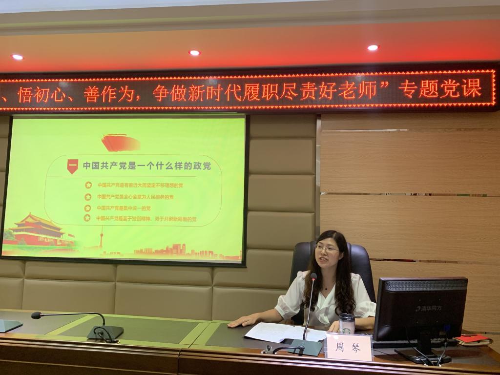 周琴要求党员老师们:一是要有讲政治的觉悟,要当一名忠诚于党的好老师,严守政治纪律和政治规矩,培养大局观念和顾全大局意识;二是必须要有组织的观念,充分认识并相信党组织力量的强大,充分利用组织力量办实事,自觉维护组织团结;三是必须要有主动作为的意识,坚持守
