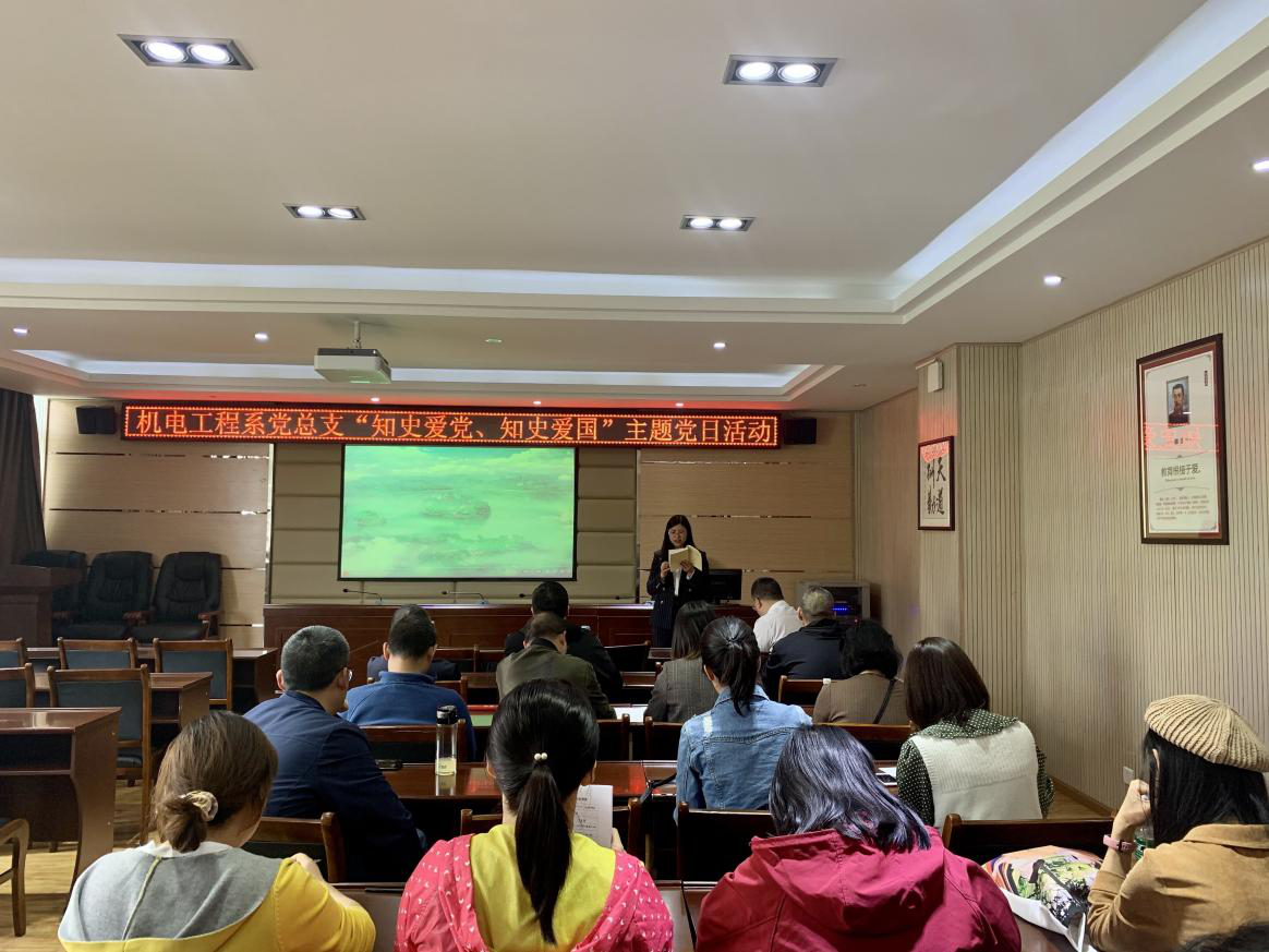 为进一步学习贯彻落实习近平总书记关于学习党史、新中国史、改革开放史、社会主义发展史的重要讲话和指示精神,紧密结合机电工程系党总支党史学习教育整体规划,4月28日下午,机电工程系全体党员教师齐聚机电大楼二楼会议室,开展了“知史爱党,知史爱国”主题党日活动。此次活动由机电工程系党总支副书记(主持工作)周琴精心主持。