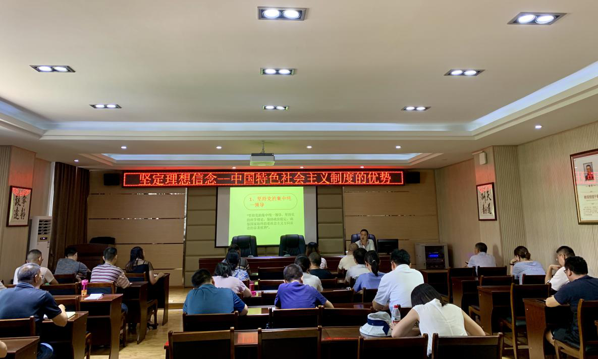 会议分为两个环节,第一环节是全系党员教师开展主题党日活动,活动内容由张明讲党课。张明首先提出总体要求,要求大家牢记全面从严治党和全面加强党的领导,增强系部集体荣誉感,增强凝聚力,相互配合、相互协调,增强“四个意识”、坚定“四个自信”、做到“两个维护”。随后,张明以“坚定理想信念——中国特色社会主义制度的优势”为主题,从坚持党的集中统一领导、紧紧依靠人民推动国家发展、坚持全面依法治国、坚持全国一盘棋、铸牢中华民族共同体意识、不断解放和发展社会生产力、在思想和精神上紧紧团结在一起、坚持以人民为中心的发展思想、善于自我完善自我发展、聚天下英才而用之、确保人民军队绝对忠诚于党和人民、坚持“一国两制”、为构建人类命运共同体不断作出贡献十三个方面进行剖析和讲解,并与党员教师们分享了他的学习心得与体会。