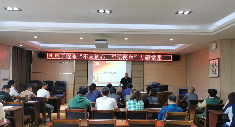 10月17日下午,机电工程系党总支在精业楼二楼会议室开展了“不忘初心、牢记使命”主题教育专题党课。机电工程系党总支书记王建平出席并授课,全体党员教师和在校学生党员参加了本次学习。