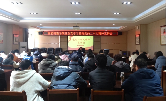 为深入学习贯彻党的二十大精神,12月7日,党委副书记王荣海赴智能制造学院以“坚持以党的二十大精神为指引,奋力推进学校双高建设”为题,宣讲党的二十大精神。学院教师党员、学生党员及部分入党积极分子参加。