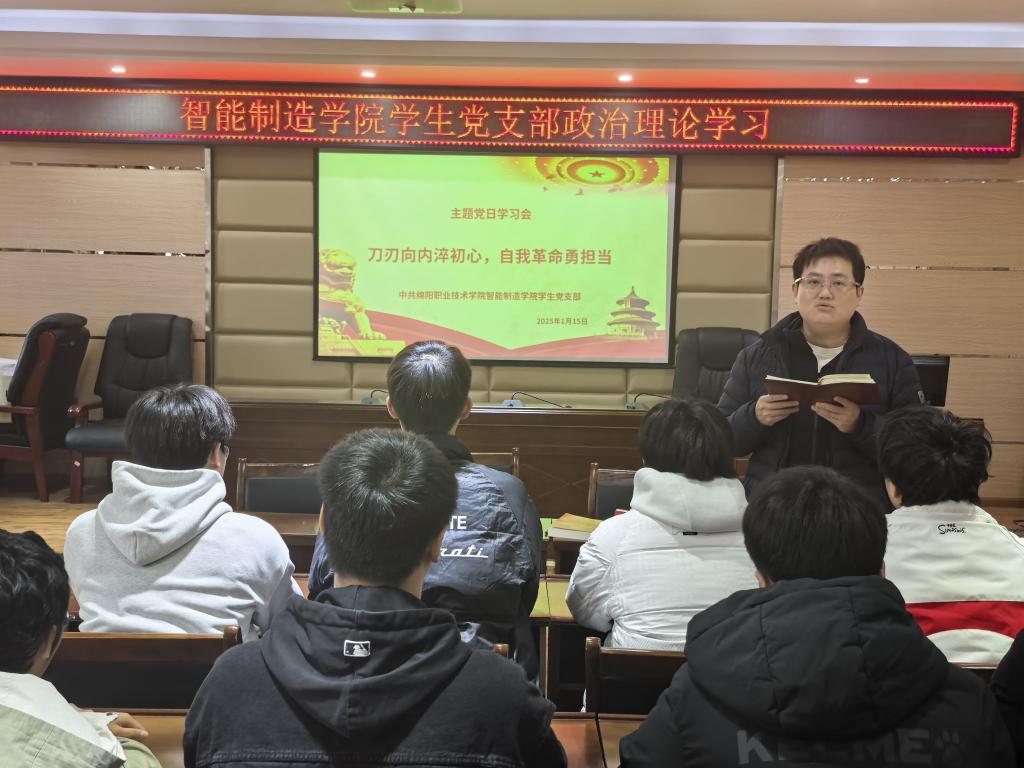 为深入学习贯彻习近平新时代中国特色社会主义思想,2024年1月20日,智能制造学院学生党支部在机电大楼二楼会议室,以“读原著、学原文、悟原理”为核心召开专题学习会,组织支部党员师生及入党积极分子集中学习《习近平著作选读》第一卷、第二卷,党支部书记主持会议。